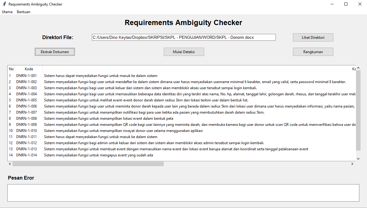 A Simple Tool to Detect Ambiguous Requirement-Sentences inside SRS (Software Requirements Specification) Document.